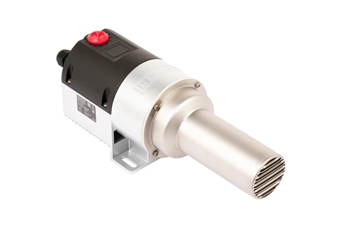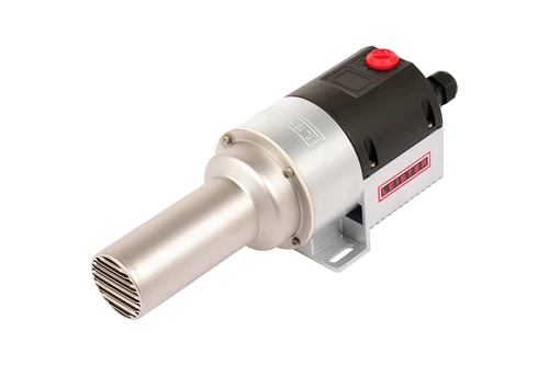 Inline air heaters such as the LHS 61S PREMIUM are used for rapid air heating and specific hot air applications in industrial processes. Through the 62 mm (2.4 in) wide heating tube, the device distributes hot air efficiently and is individually adjustable for respective requirements through various accessories and nozzles. Integrated power control allows easier installation, because fewer cables have to be laid. Not only does this reduce installation costs, but also reduces the risk of faulty connections.