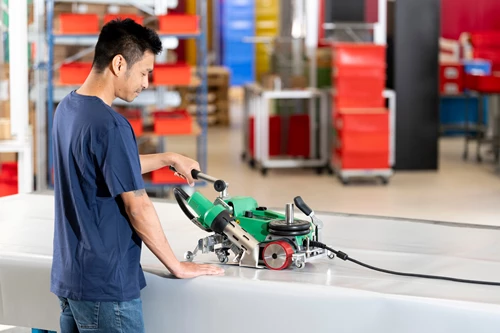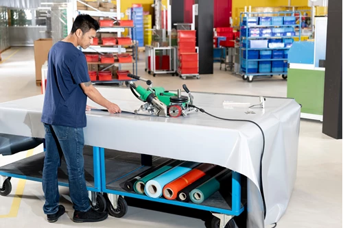 The UNIPLAN 510 is an efficient and highly versatile automatic welding machine that significantly enhances welding quality for applications such as truck tarpaulins, tents or banners. Perfect for overlap, hem, and pipe welding, the UNIPLAN 510 automatic welder is the ideal solution. Featuring high-class welding nozzles and modern heating elements that significantly improve welding efficiency and results, it delivers superior outcomes for demanding tasks.