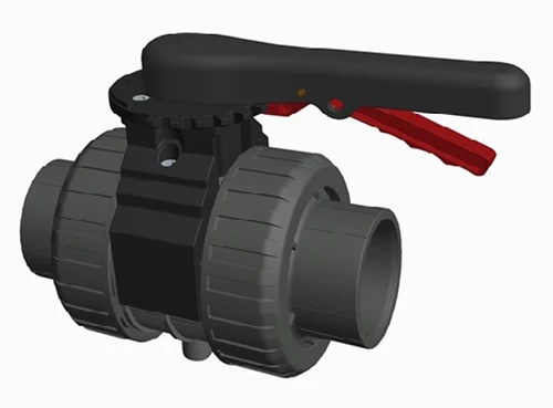 Præcisions kugleventil fremstillet af uPVC, egnet til installationer op til 16 bar.