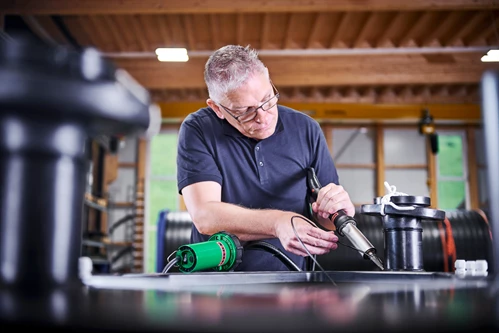 Smidigt og kraftfuldt svejseapparat med trinløs justerbar svejsetemperatur og for ekstern lufttilførsel.