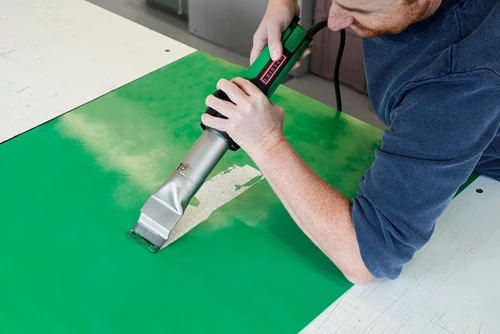 En kraftig varmepistol kræver også en stærk blæsemotor og netop blæsemotoren er en af de dele LEISTER har haft fokus ved udviklingen af Electron ST. Det er lykkedes at udvikle en slank kraftfuld motor og derved har man været i stand til, at reducere diameteren på det grønne motorhus og derved fået et betydeligt mere ergonomisk greb eller motorhus.