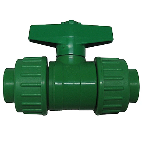 PP-R Polypropylen kugleventil med omløber for anvendelse i industrielle og maritime applikationer.