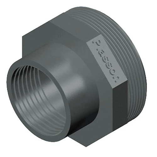 PVC gevindfittings er i grå farve i overensstemmelse med gældende standarder.