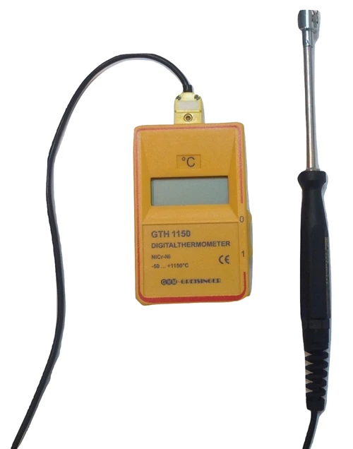 Med hurtig reaktionstid og høj målenøjagtighed giver GTH1150 pålidelige temperaturmålinger, som kan aflæses tydeligt på det digitale display. Enheden understøtter tilslutning af eksterne temperatursensorer (f.eks. type K), hvilket gør det muligt at måle direkte på varmespejlets overflade.