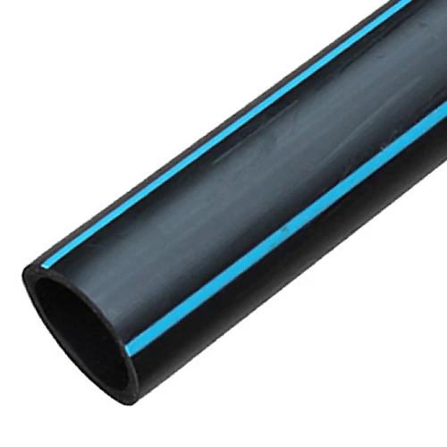 PE100 Trykrør med blå stribe til drikkevand. Leveres i længder à 6 meter. Produceret iht. EN12201, NORDIC POLYMARK OG DK-VAND.