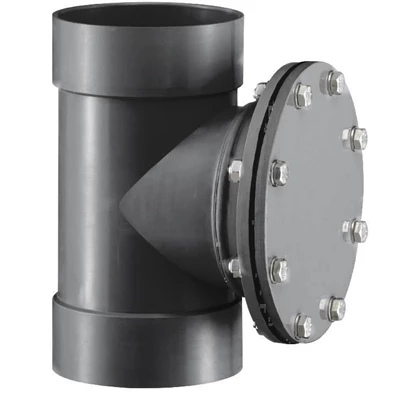 PVC VENTILATIONS RENGØRINGSADGANG M/ FLANGE - GRÅ RAL 7011